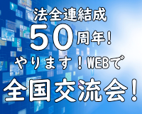 法全連誕生から50周年を迎えた昨年、これまでリアルで行って来た全国交流会を一昨年に引き続きWebで、しかも50周年を祝う企画をどうするか、法全連幹事と事務局は頭を悩ませながらZoomでの打合せを重ねてきましたが、50年の歩みを振り返る「基調報告」を津田幹事(兵庫)、沼倉幹事(宮城)の両名が執筆、秘蔵写真?!も織り込んだ渾身の映像は中島幹事(愛知)が担当して、初めての方もベテランの方も、50年の足跡を辿ることが出来たのではないでしょうか。