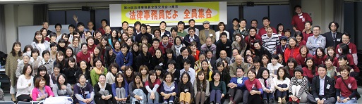 法律事務員全国連絡会では、年に一度(秋)、全国の法律事務員さんが一同に集まり、交流しています。例年、140名ほどが集まります。開催場所は様々で、札幌、名古屋、京都、大阪、神戸、福岡などで開催しています。